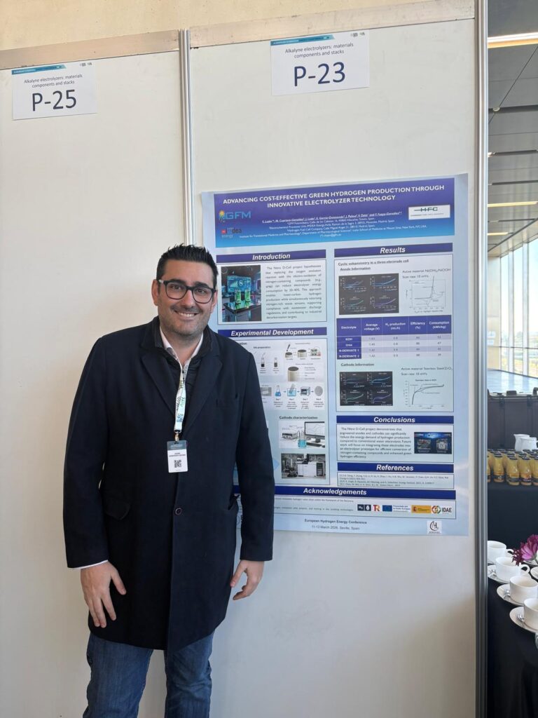 Javier Rodríguez, del Departamento de Desarrollo de Negocio de GFM Fotovoltaica, ha sido el encargado de presentar este proyecto que ha sido desarrollado por IMDEA Energía y GFM Fotovoltaica, en el European Hydrogen Energy Conference.
